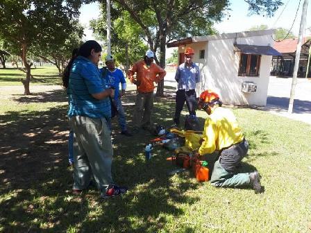 Esta formación tuvo como objetivo la correcta utilización de la motosierra, abordando técnicas de corte, herramientas complementarias y equipos de seguridad, con la finalidad de proteger al equipo de trabajadores en el uso y optimizar las tareas de erradicación de plantas que las tres instituciones vienen llevando adelante en la localidad.