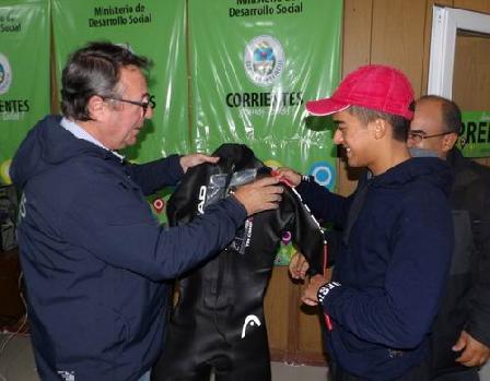 En representación del gobernador Gustavo Valdés, el secretario de Deportes de la Provincia, Jorge Terrile aportó un traje de neoprene para la práctica de triatlón al atleta Lautaro González, quién logró superar una serie de inconvenientes de salud, destacándose hoy en circuitos nacionales de la mencionada disciplina.