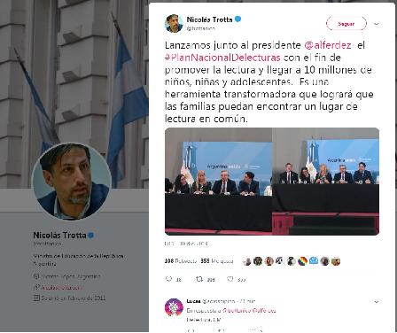 El presidente Alberto Fernández elogió este lunes que se estimule "volver a la lectura" en el acto de lanzamiento del Plan Nacional de Lectura, acompañado por el ministro de Educación, Nicolás Trotta, en el Museo del Bicentenario, en Casa Rosada. El acto se desarrollará a partir de las 11, en el Museo del Bicentenario, con la asistencia del ministro de Educación y su equipo e invitados especiales.
