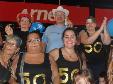 Toda la tribuna de la noche del sabado muy contenta y divirtiendose al paso de las Comparsas.